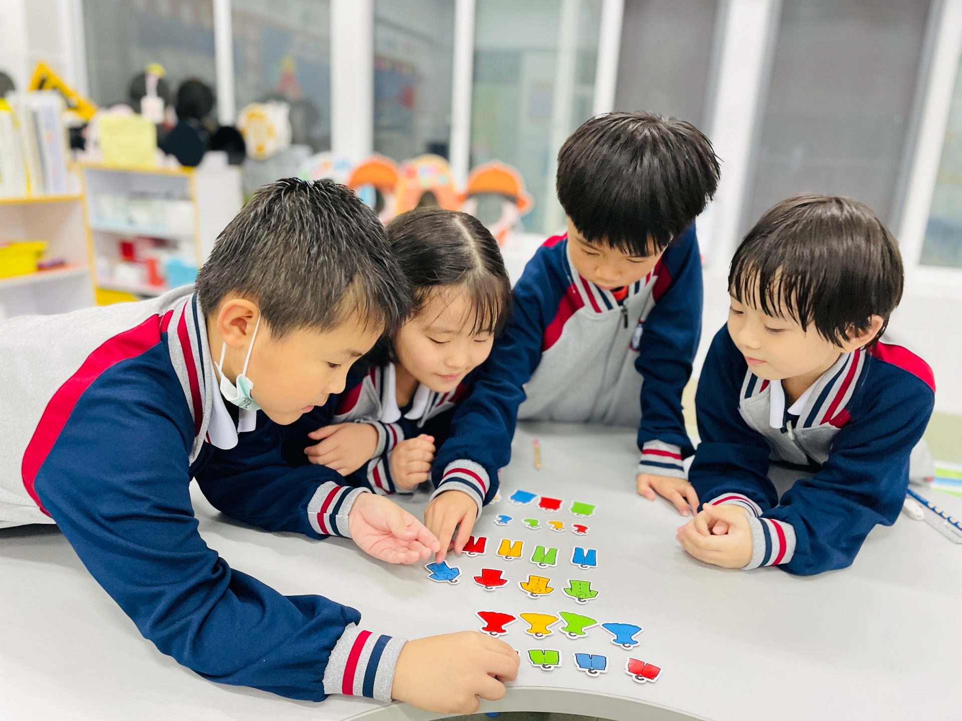 “晾衣服”活动需要学生相互合作,按不同的标准(颜色、种类)将衣服进行分类。在各式花样数学活动中,学生不仅仅掌握了知识,更锻炼了技能,还收获了对数学学科的喜爱,可谓一箭三雕也。