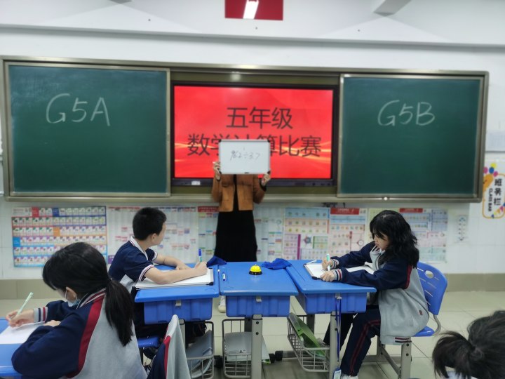 为了激发学生学习数学的兴趣,进一步提高学生计算速度和准确率,五年级进行了以班级PK为形式的计算比赛。比赛通过抽签随机配对,题目一出,选手们便全身心投入,速度答题,代表班级而战。此次活动调动了学生学习数学的积极性,培养了学生严谨和勇于竞争的学习态度。