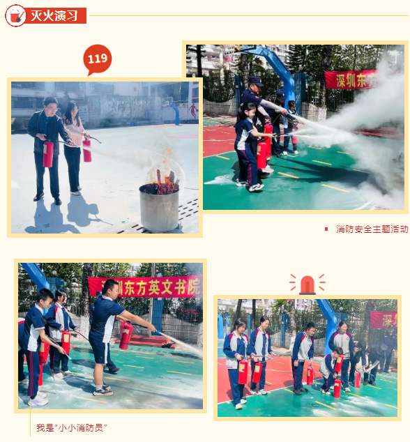 不仅如此,学校还在校园操场上设置了一个着火点,开展灭火演习。专业人员现场讲解示范,同学们看得目不转睛,纷纷表示学到了很多实用的灭火技巧。