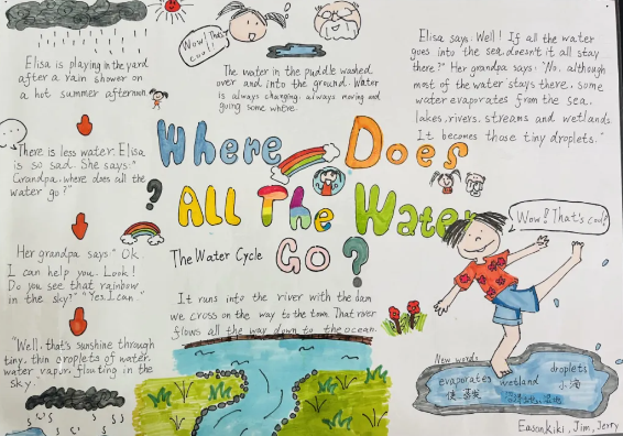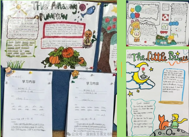 一面面蓝板,其实是 PYP 阅读教学理念的缩影:让阅读从课堂走向生活,让感悟从被动接受变为主动表达。它像一棵默默生长的树,课堂上的知识是土壤,孩子们的思考是阳光,互动分享是雨露,而那些贴在蓝板上的笔迹、图画、感悟,就是一颗颗正在发芽的阅读种子。