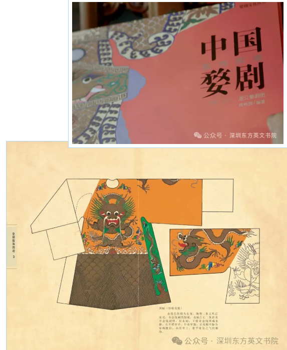 • 理论课上,同学们通过徐裕国大师(浙江省非遗传承人,课题主持人王凯悦老师外公)的《中国婺剧服饰图谱》,了解婺剧从明末至今的发展脉络。