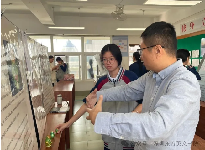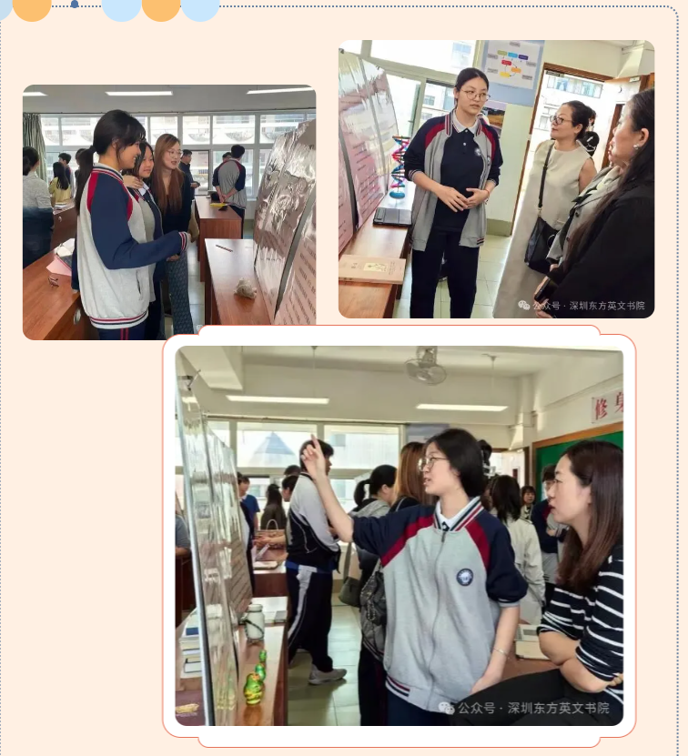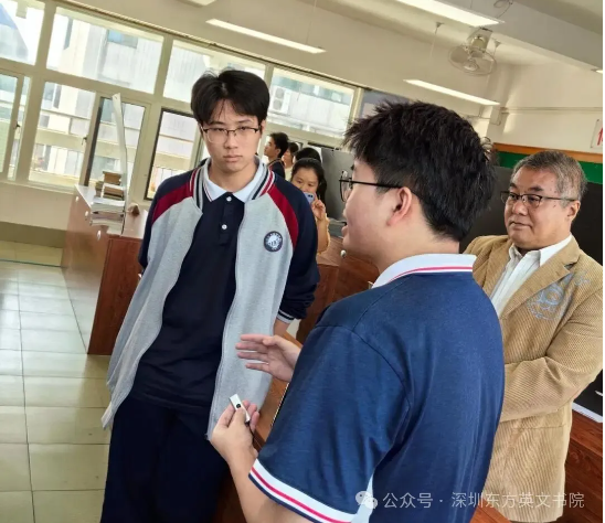 国际部王校长与教学处王主任全程参与展览,与同学们深入交流,探讨每件展品背后的意义,并提出许多富有启发性的问题。拥有四十多年IB教学与管理经验的王校长,以中英双语与同学们亲切互动。他在活动后表示:“只有以概念驱动教学、以探究推动学习,才能更好地激发师生的潜能。本次成果展正是这两方面的生动结合,让我们看到了许多精彩的瞬间。”
